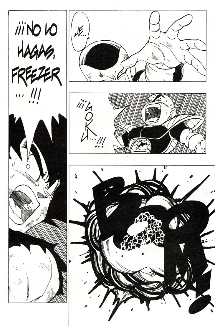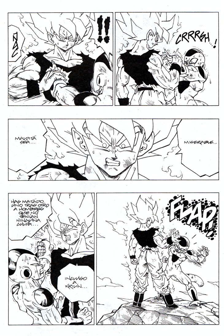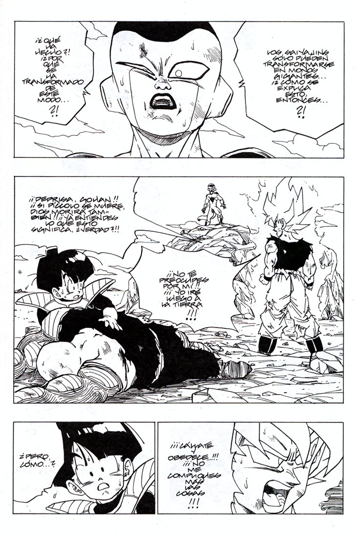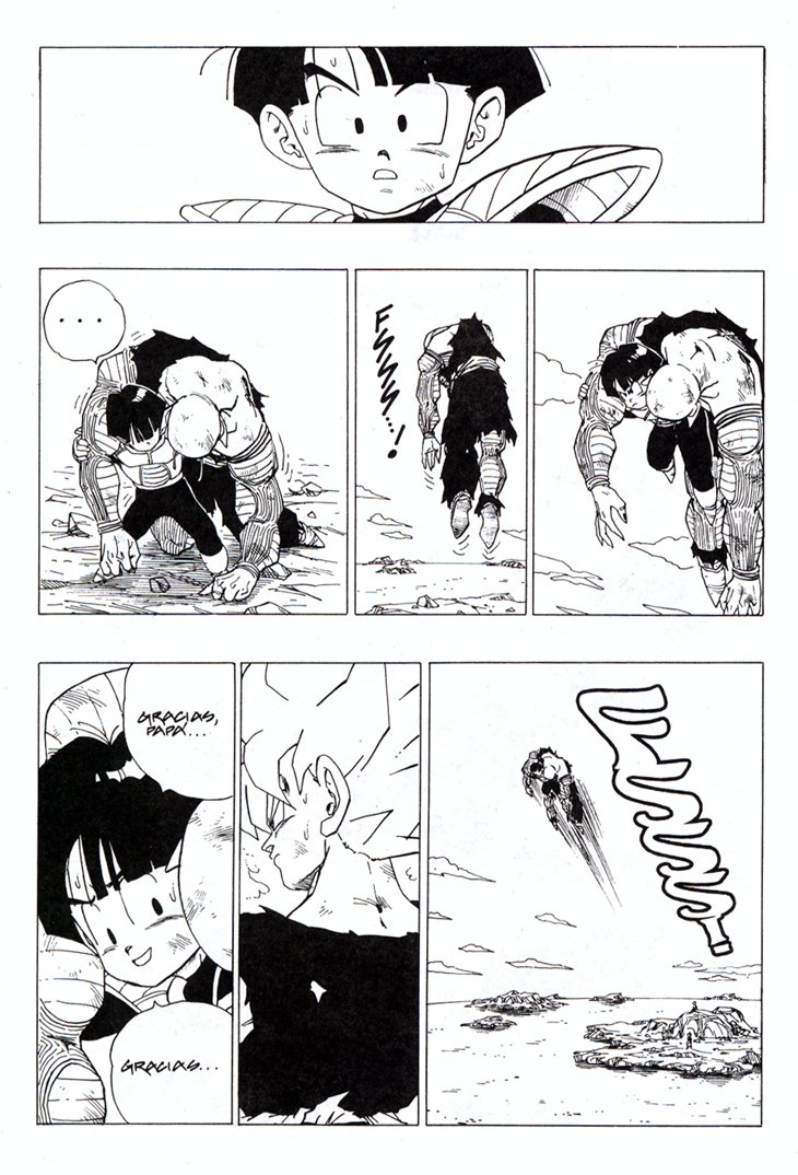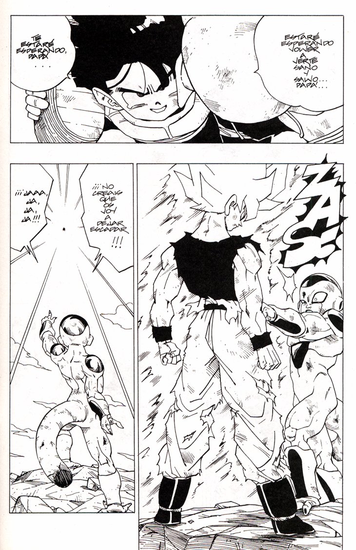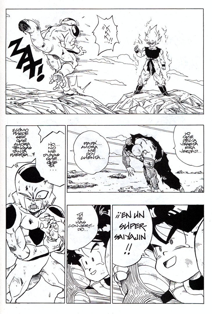 Seguro que todos recordareis el memorable momento en que Gokuh alcanza por primera vez el nivel de Super Saiyajin frente a Freezer, en Namek. Estas hojas han sido extraidos del Tomo 27 de Dragon Ball, Planeta DeAgostini Comics