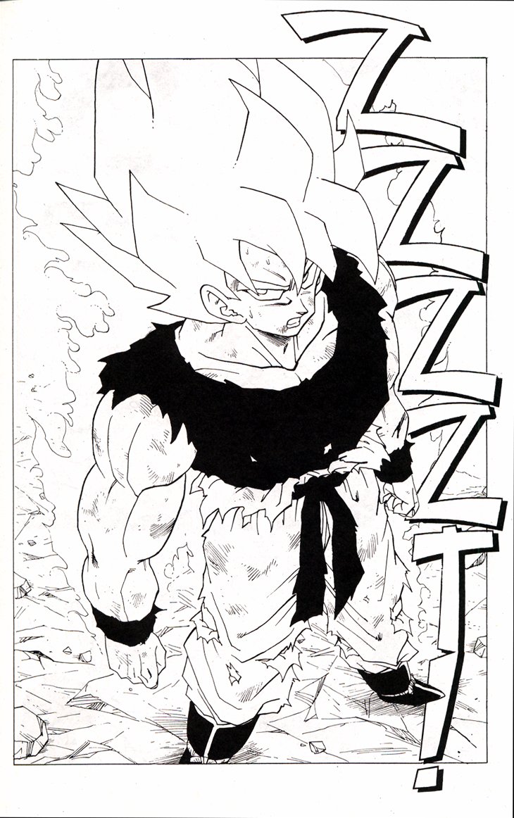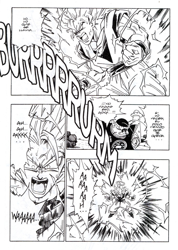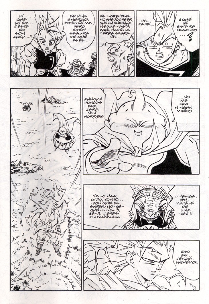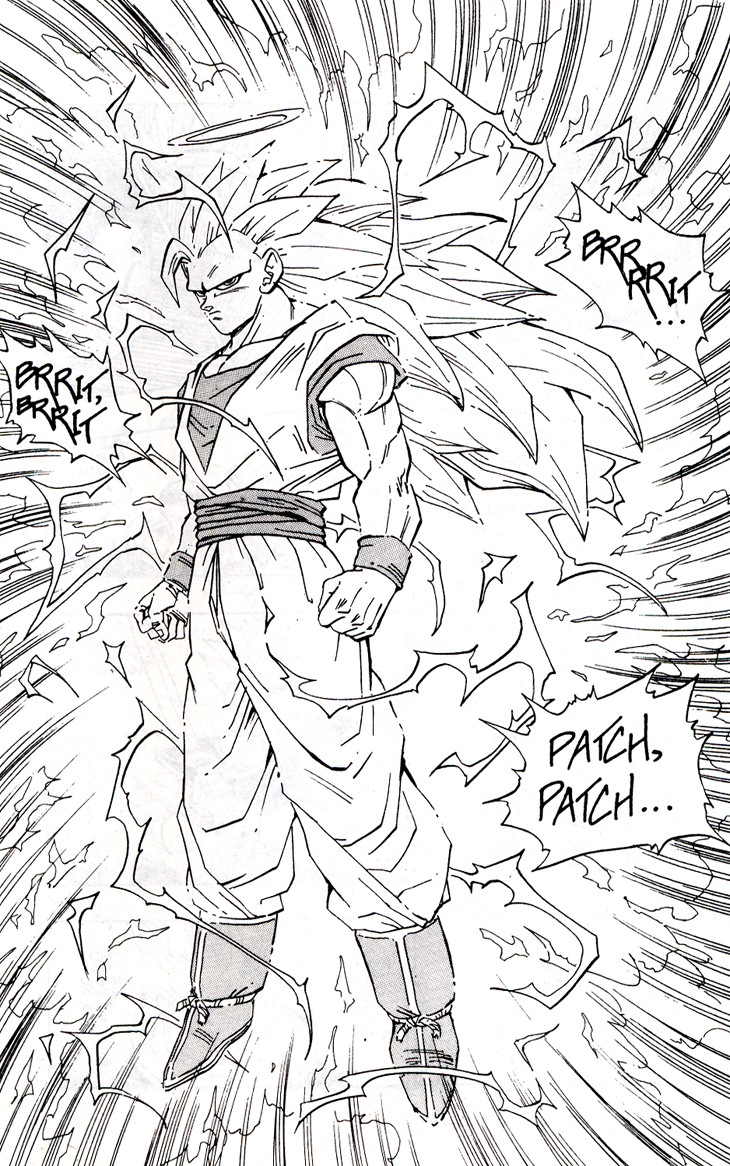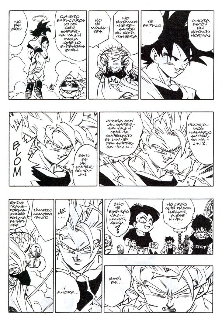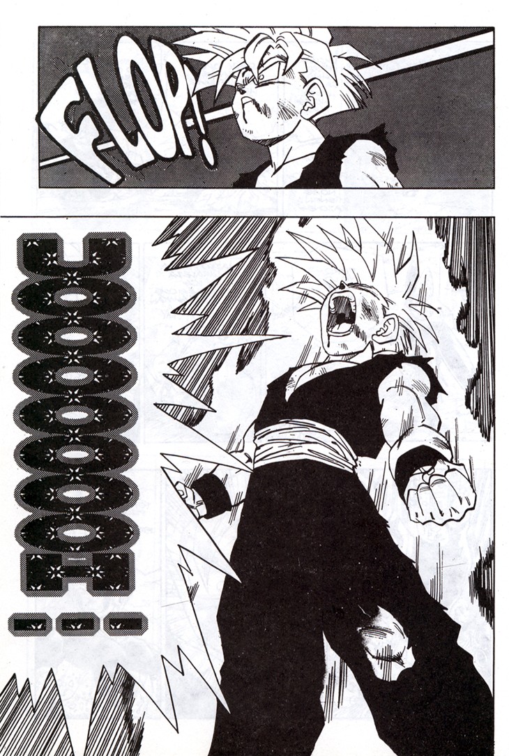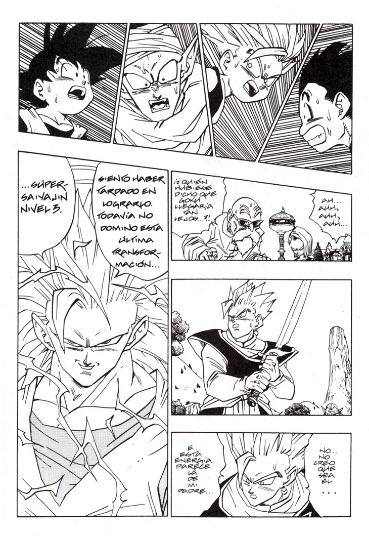 Cuando parecía que ya no se podía superar más el nivel de un Super Saiyajin es Gokuh quien lo sobrepasa aun arriesgando tiempo de su vida terrenal, con tal de que Trunks pueda recuperar el Radar del Dragón. Estas hojas han sido extraidos del Tomo 40 de Dragon Ball, Planeta DeAgostini Comics