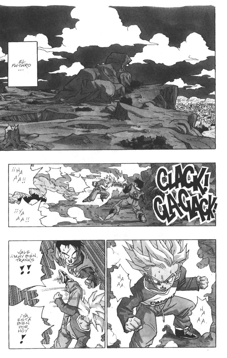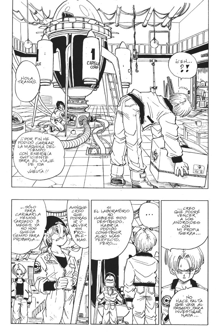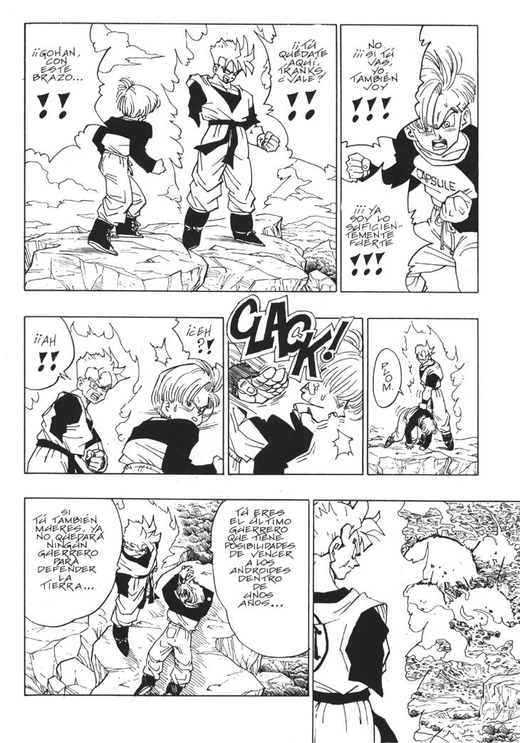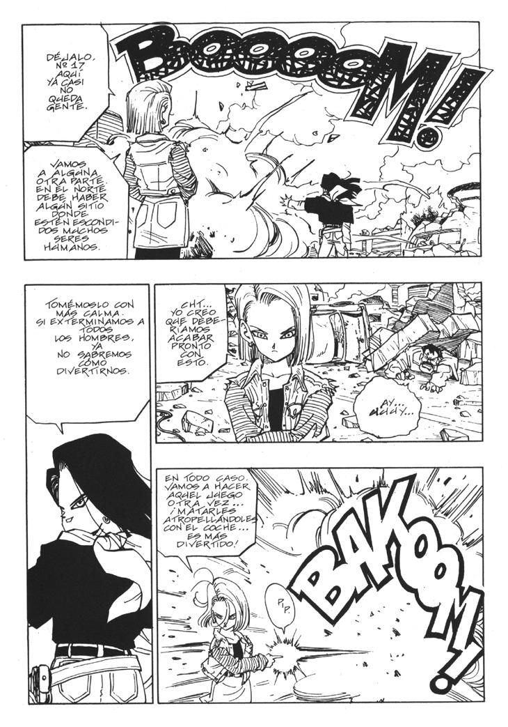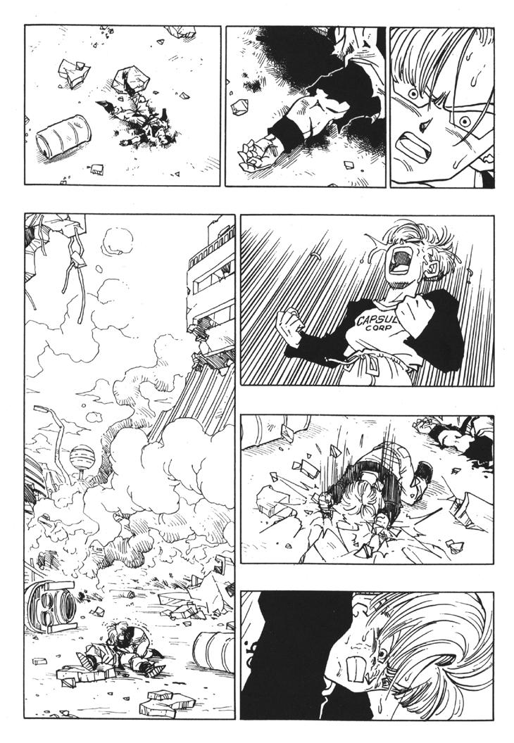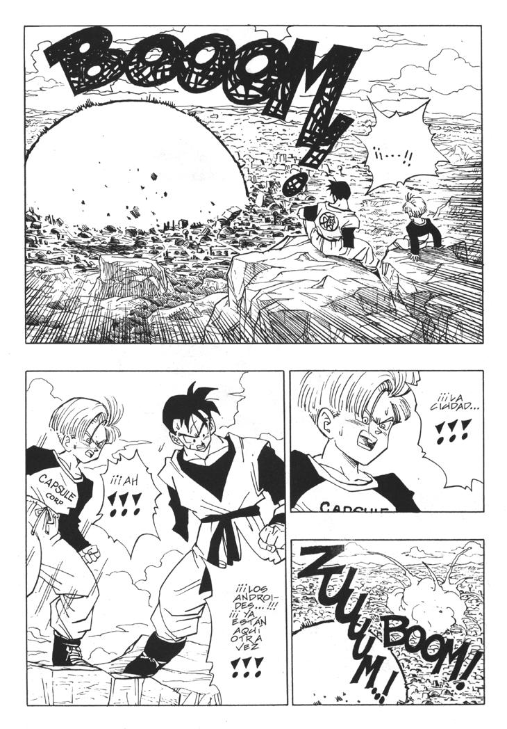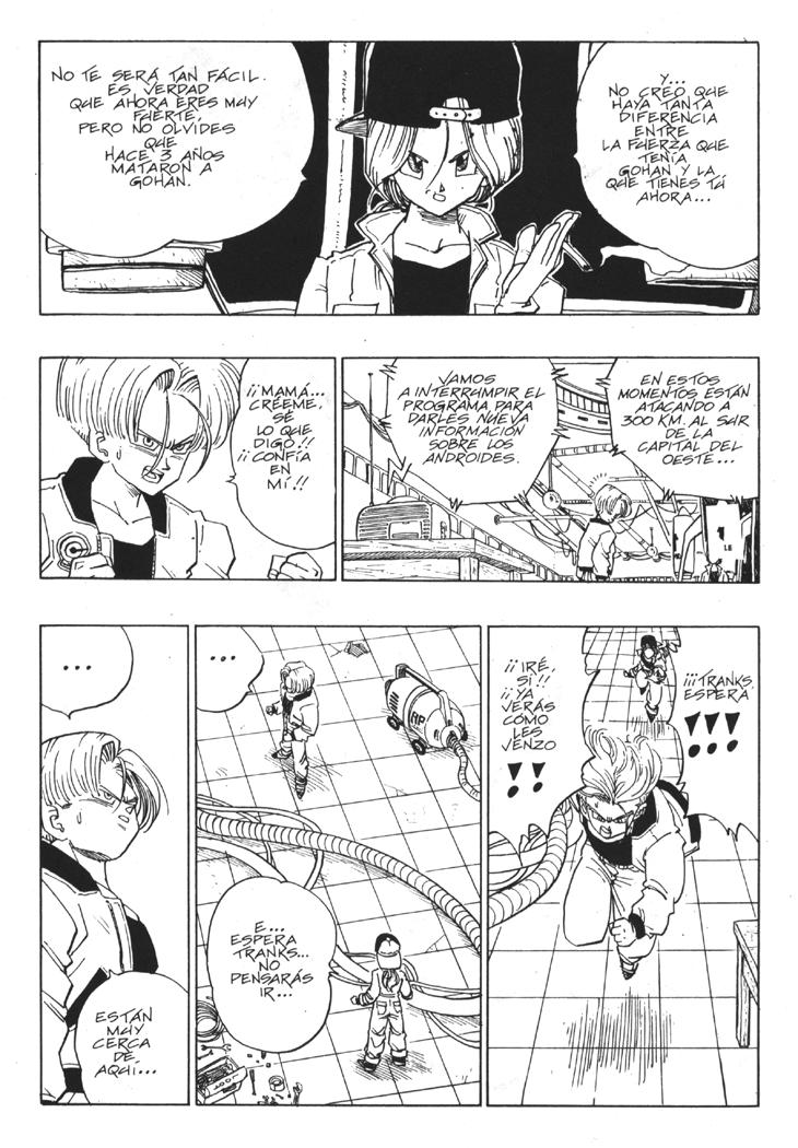 Muchos habeis visto el segundo especial de TV donde se cuenta la historia del futuro devastado por los androides y de como Trunks marcha al pasado buscando una solución. Sin embargo, lo que muchos no sabreis es que esa historia es original de Akira Toriyama, y que fue dibujada por él mismo y publicada al final del Tomo 33 de Dragon Ball. Estas hojas han sido extraidos del Tomo 33 de Dragon Ball, Planeta DeAgostini Comics |