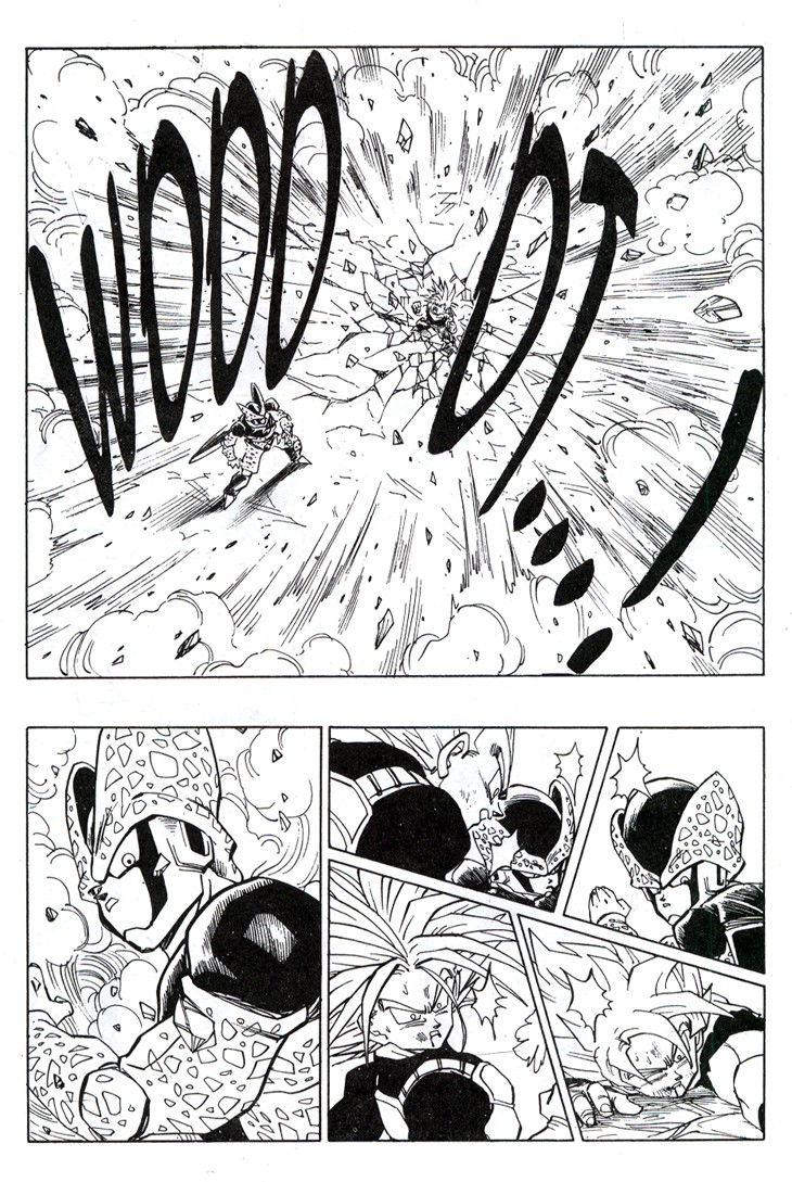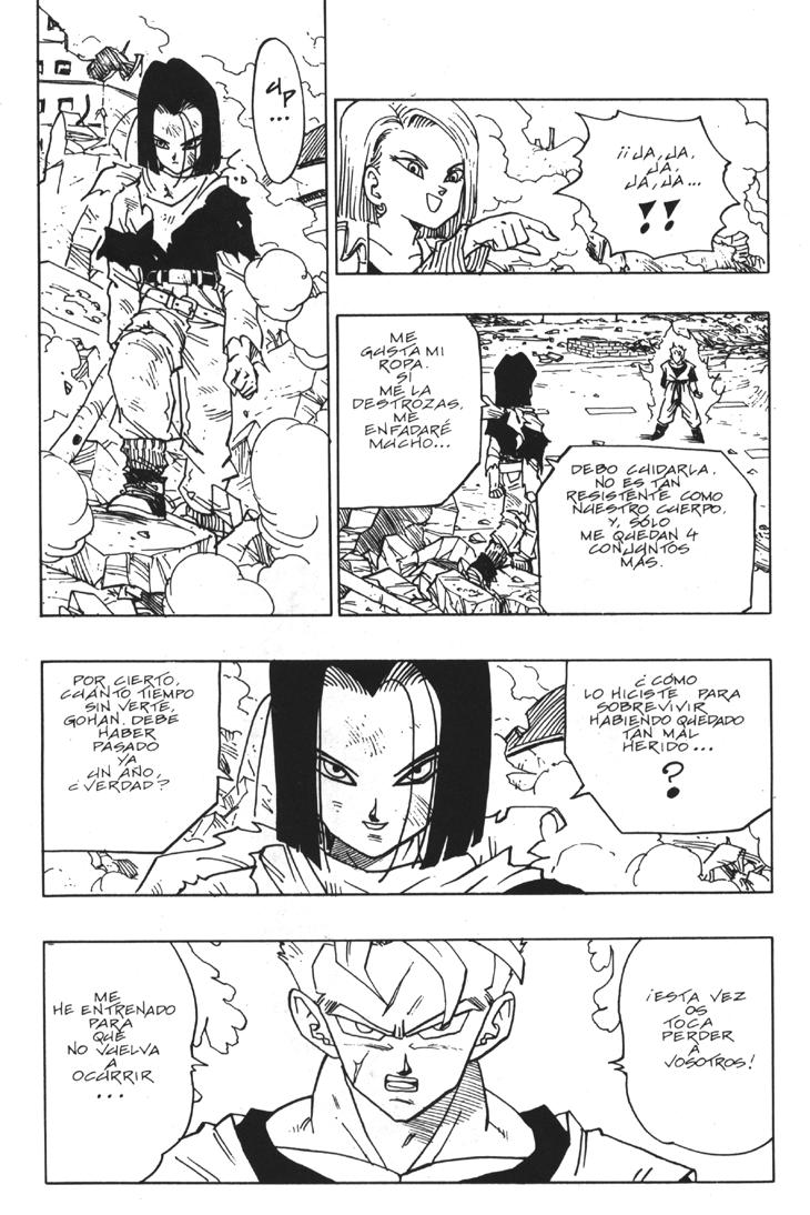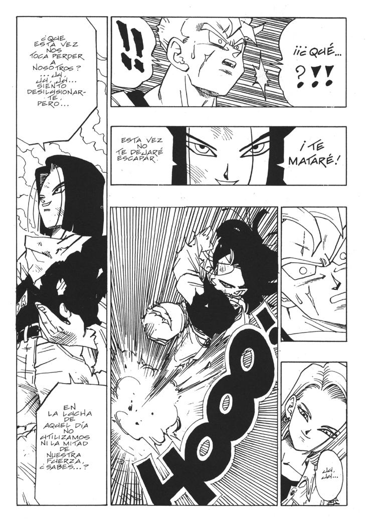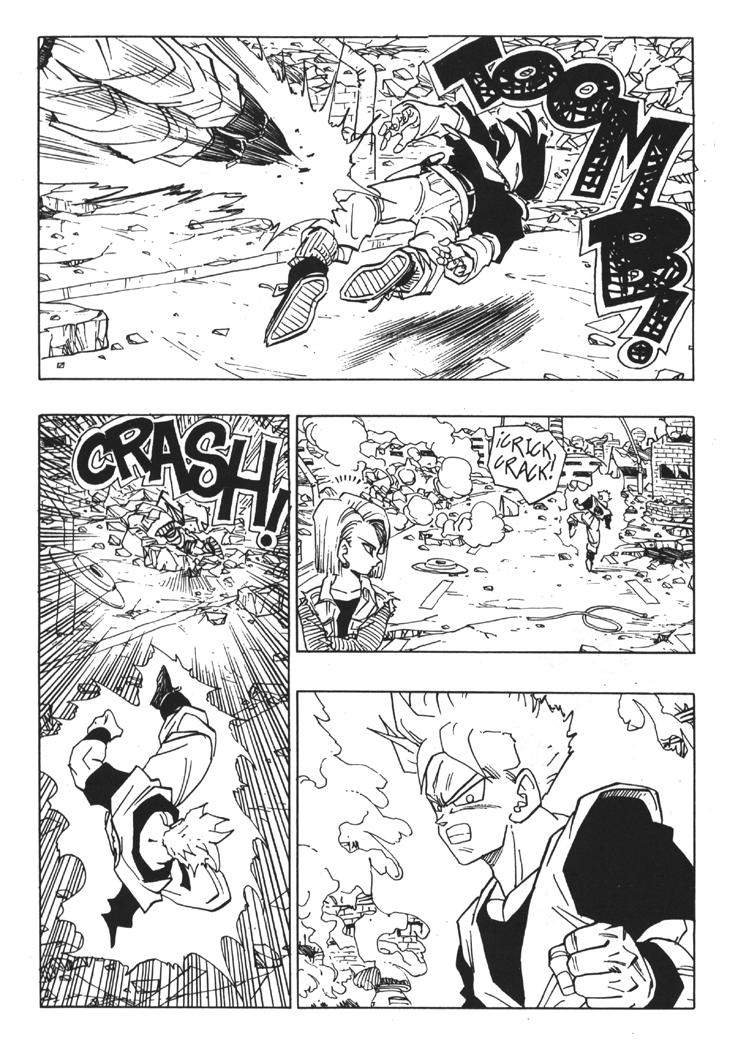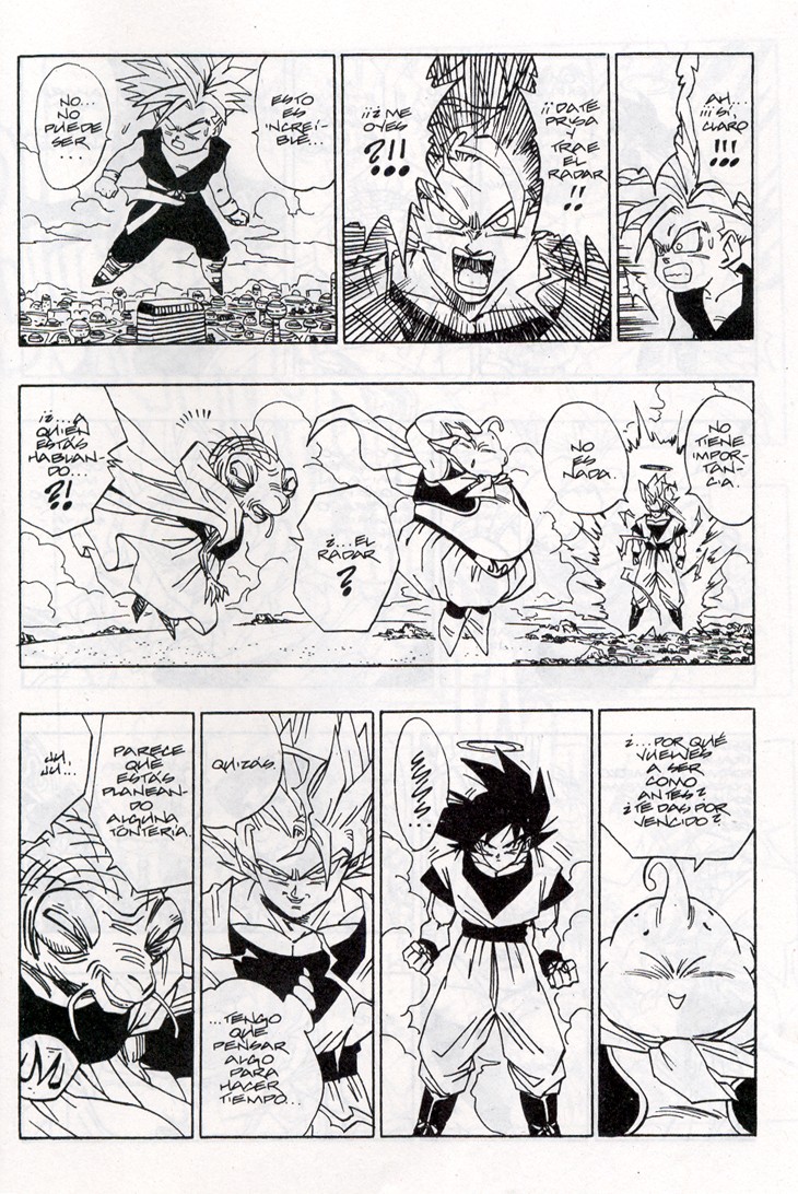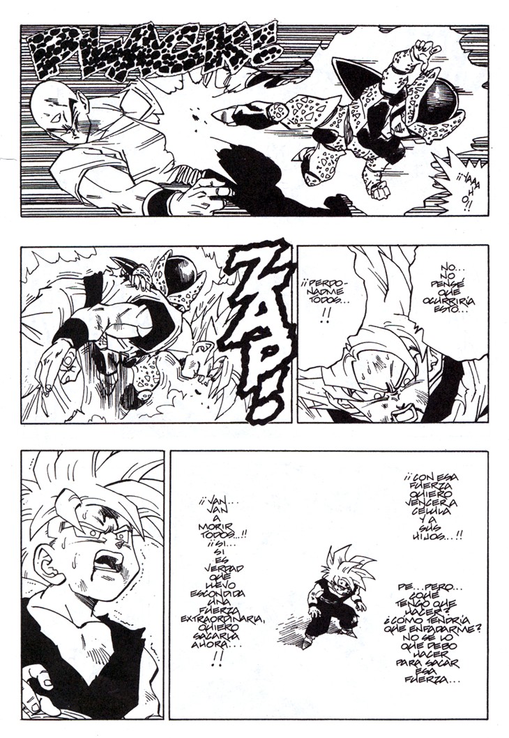 Muchos habeis visto el segundo especial de TV donde se cuenta la historia del futuro devastado por los androides y de como Trunks marcha al pasado buscando una solución. Sin embargo, lo que muchos no sabreis es que esa historia es original de Akira Toriyama, y que fue dibujada por él mismo y publicada al final del Tomo 33 de Dragon Ball. Estas hojas han sido extraidos del Tomo 33 de Dragon Ball, Planeta DeAgostini Comics |