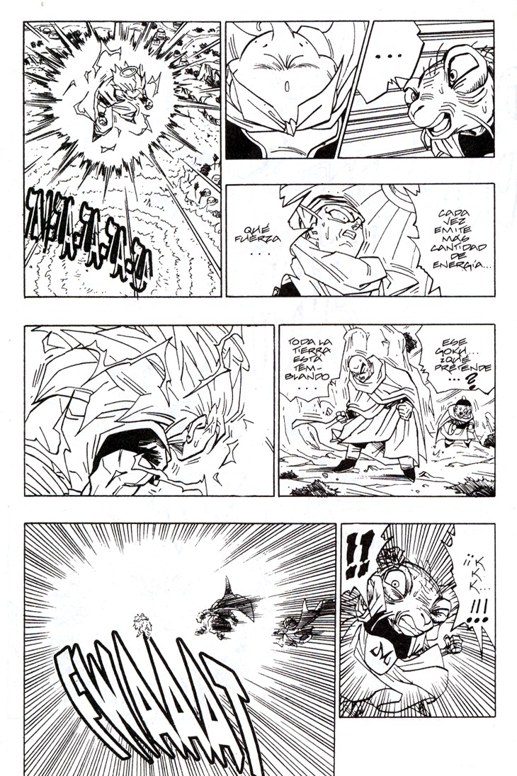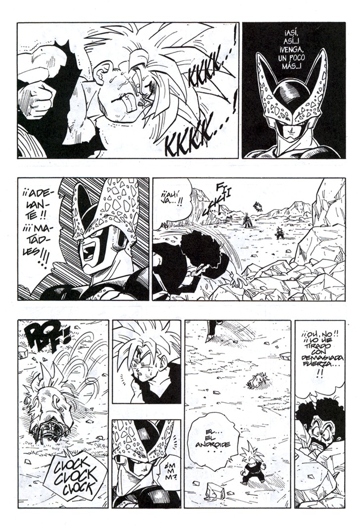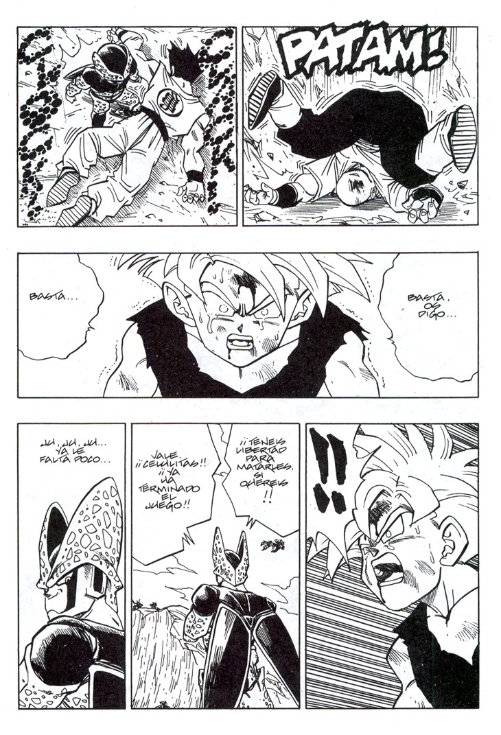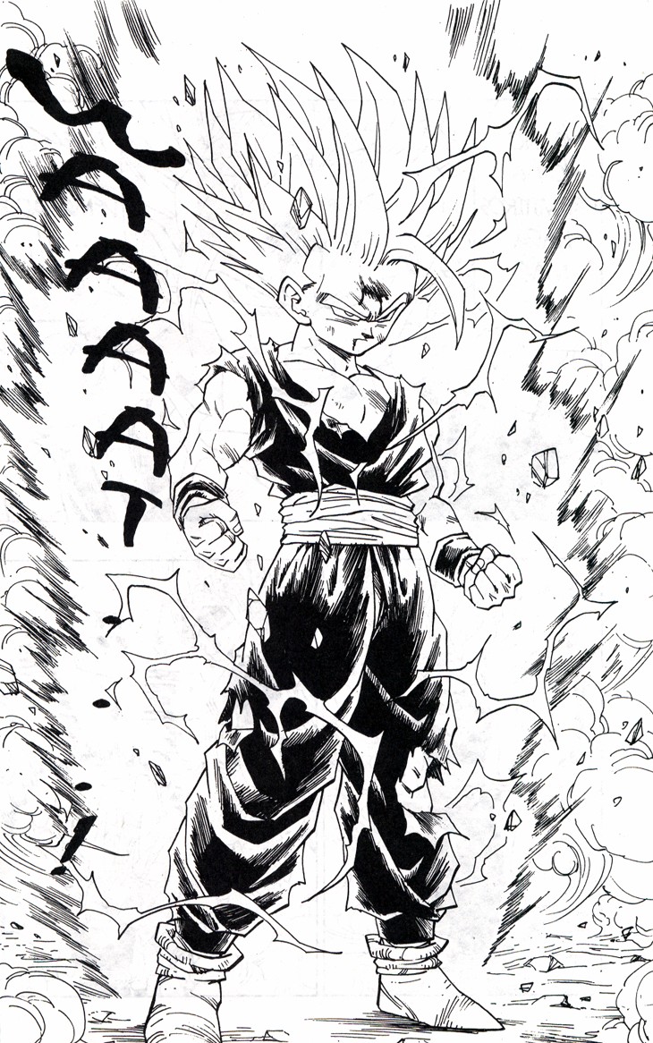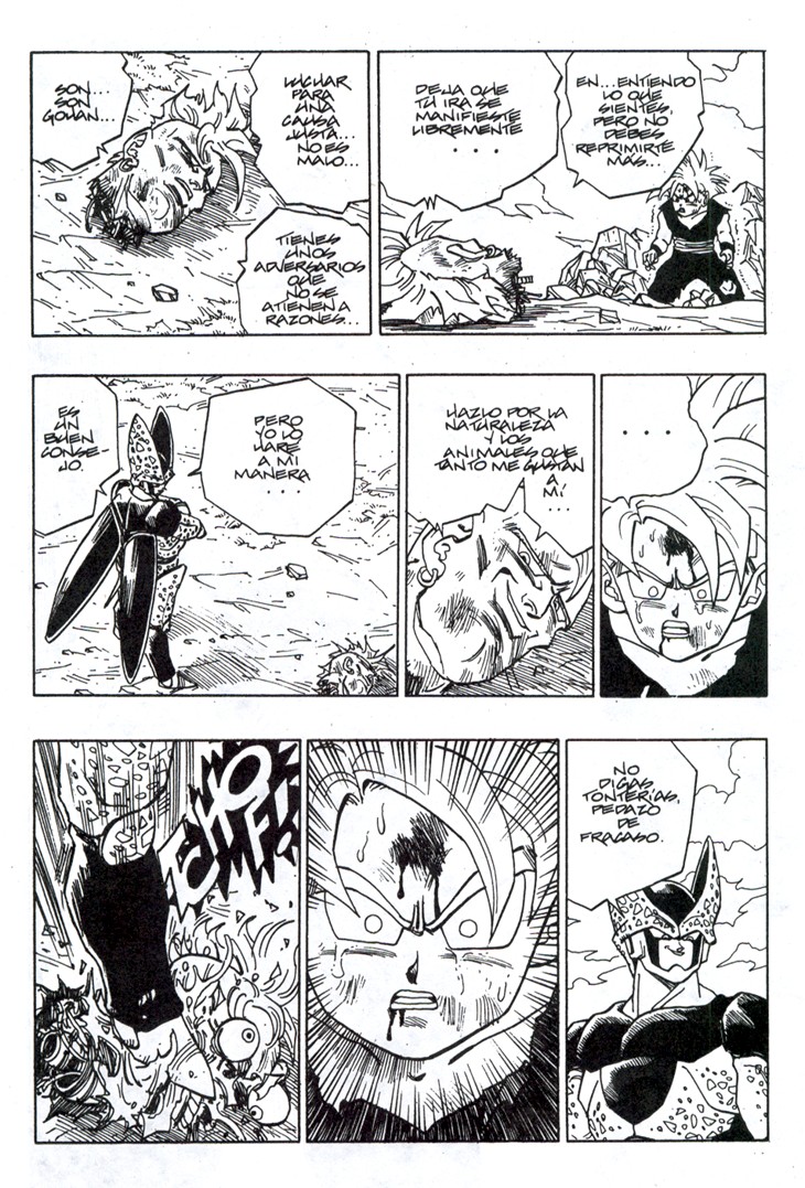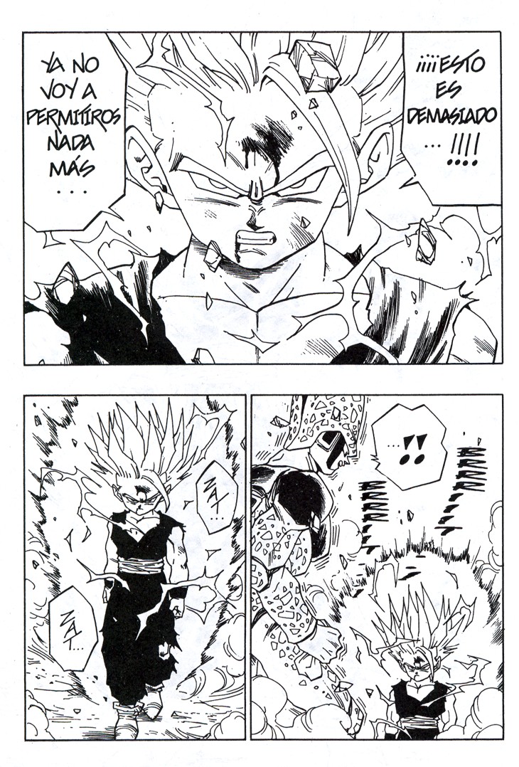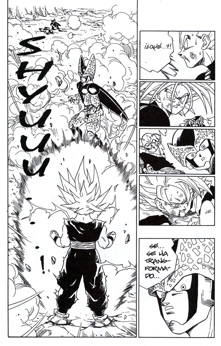 Uno de los momentos más espectaculares de la serie. Gohan consigue sacar su poder interior transformándose en Super Saiyajin de nivel 2, ante el asombre de Cell y el resto de Guerreros Z Estas hojas han sido extraidos del Tomo 34 de Dragon Ball, Planeta DeAgostini Comics